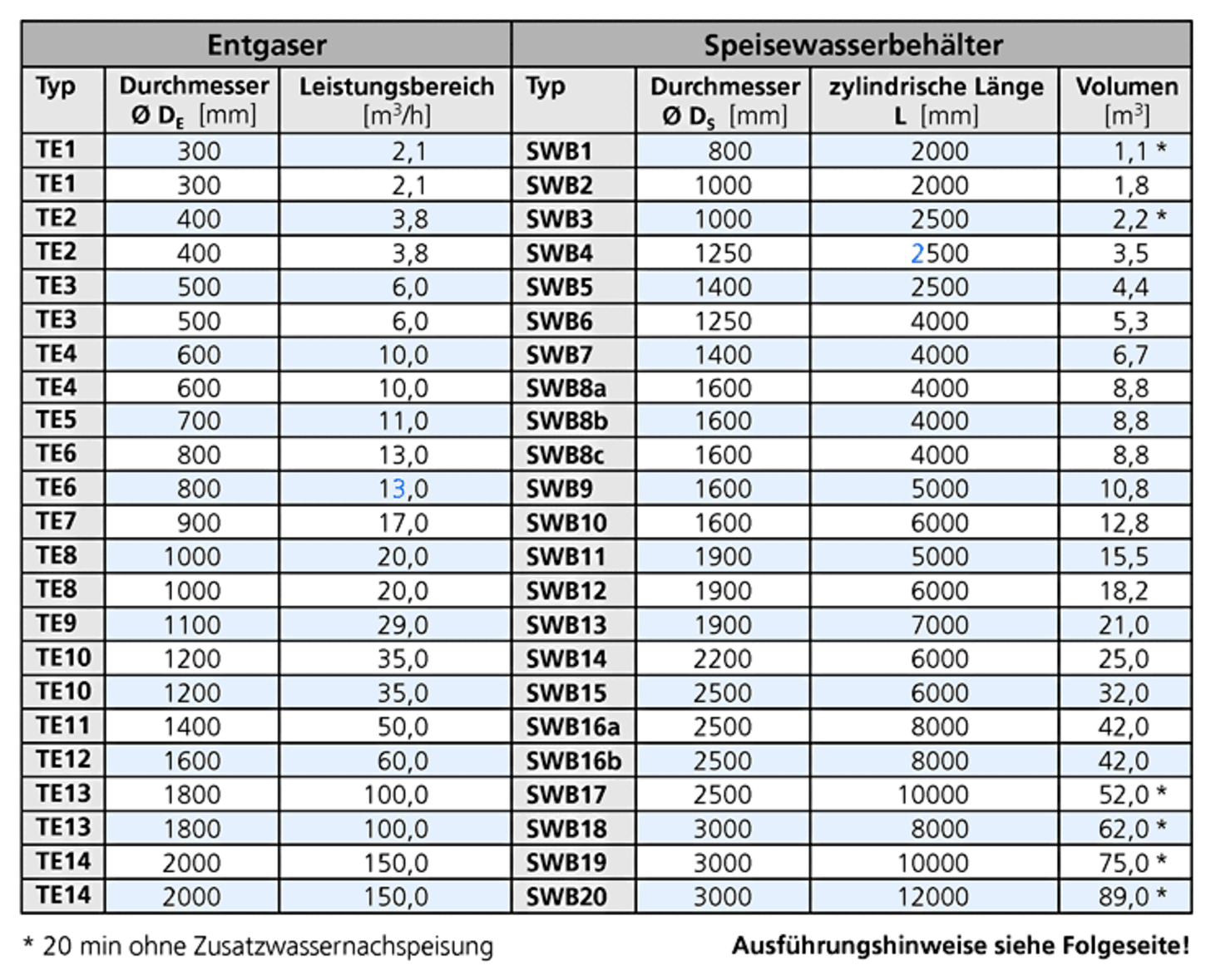 Wir liefern auch einzelne standardisierte Entgaser bis zu 150 t/h sowie Speisewasserbehälter z. B. für Ersatzzwecke. Sonderausführungen oder vom Standard abweichende Ausführungen sind auf Anfrage möglich.