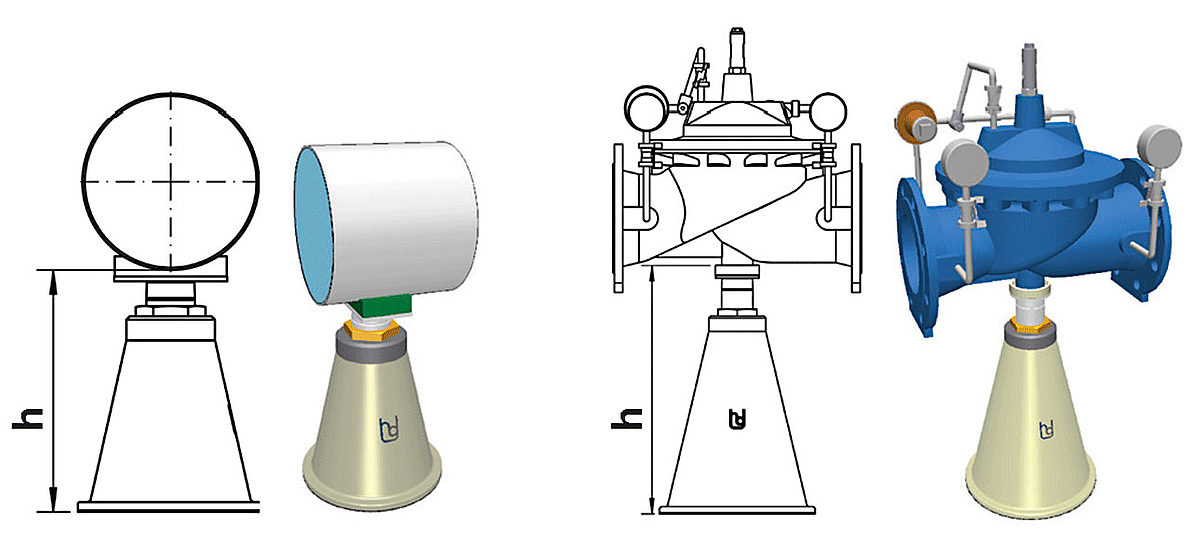 Mit verschiedenen Grundkörpern können Unterstützungshöhen zwischen 100 mm bis 1350 mm bei Nennweiten von DN 80 bis DN 1300 realisiert werden.